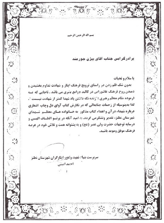 ما ضمن سپاس و تجليل از تلاش هاي اين مولف، شاعر و نويسنده، براي ايشان آروزي توفيق و سلامت داريم.