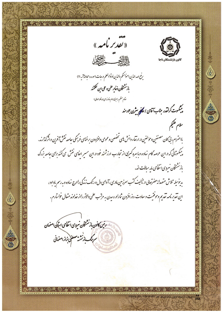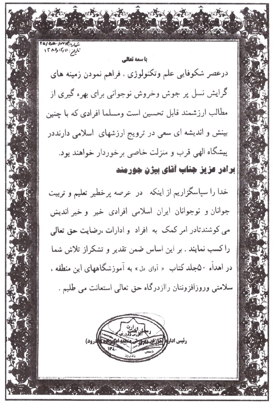 تقدير نامه رئيس آموزش و پرورش منطقه بادرود + عکس